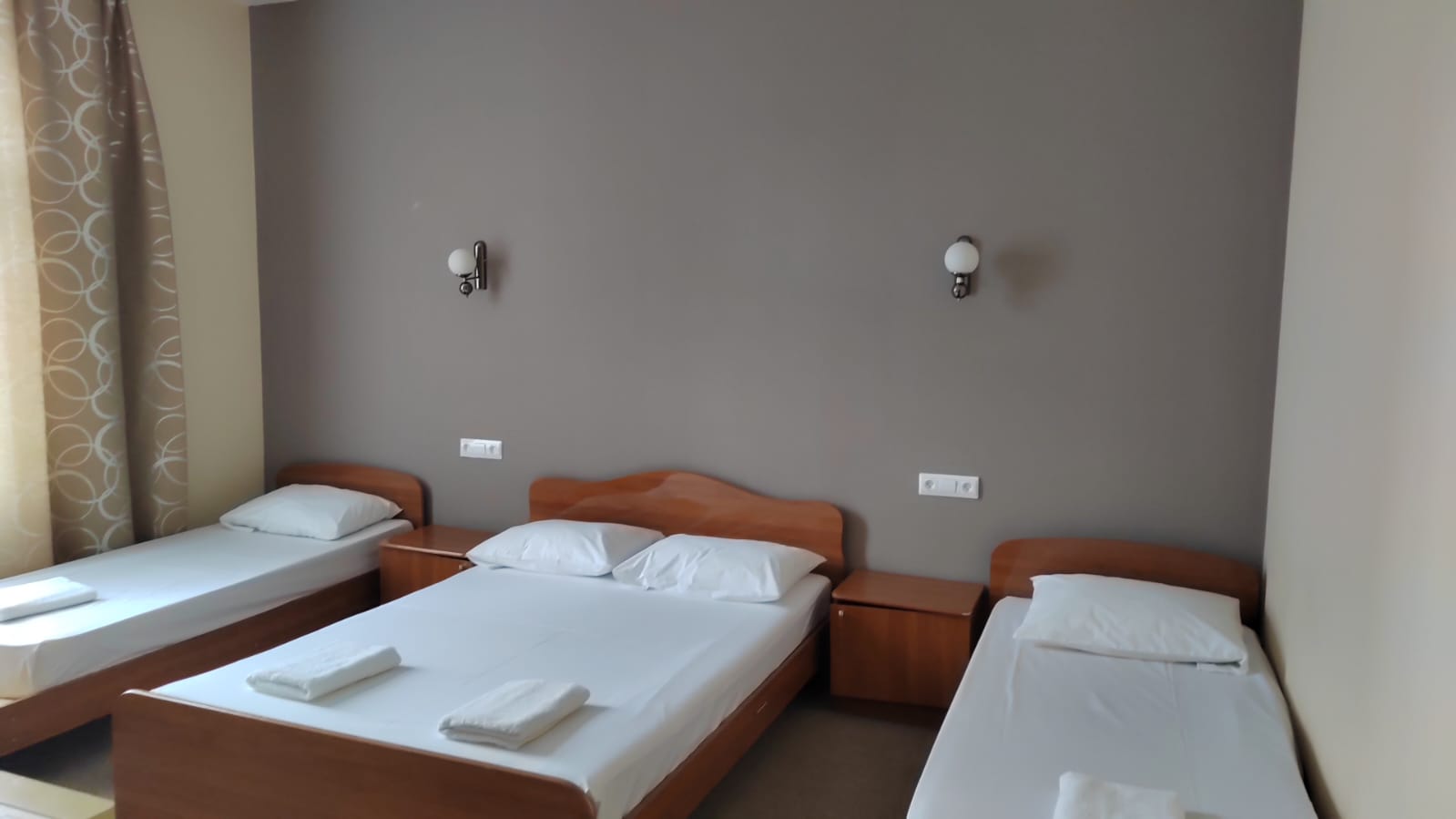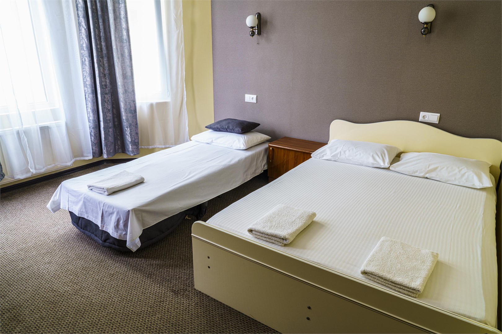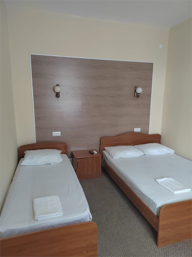 | Комфорт 3-местный | 18 кв.м. | 3 чел. | Мебель (кровать двуспальная, кровать односпальная, прикроватная тумбочка, стол, стул, шкаф), Оборудо... | |