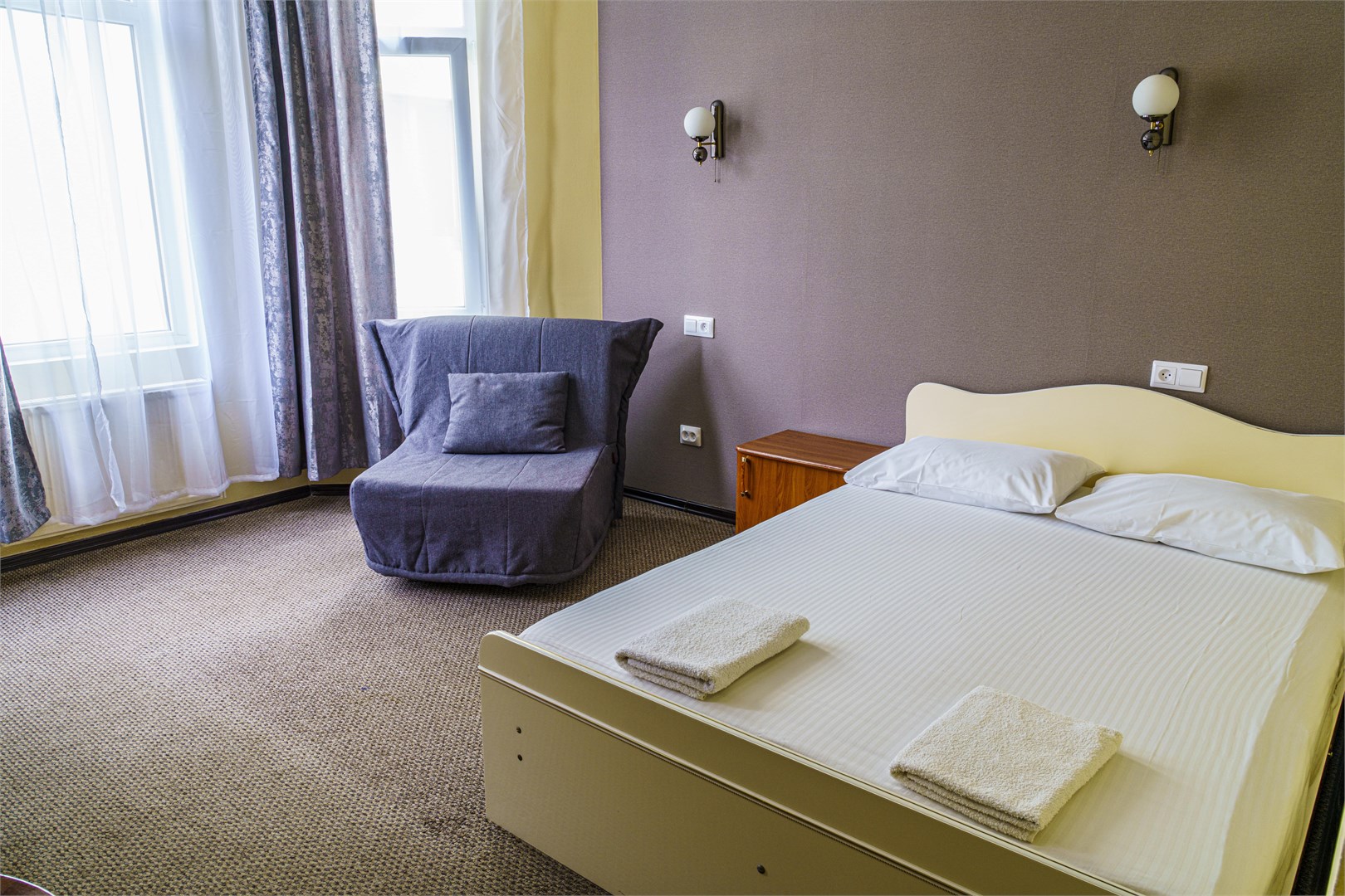 - Сервис: Wi-Fi бесплатно, смена полотенец, смена постельного белья, уборка номера
